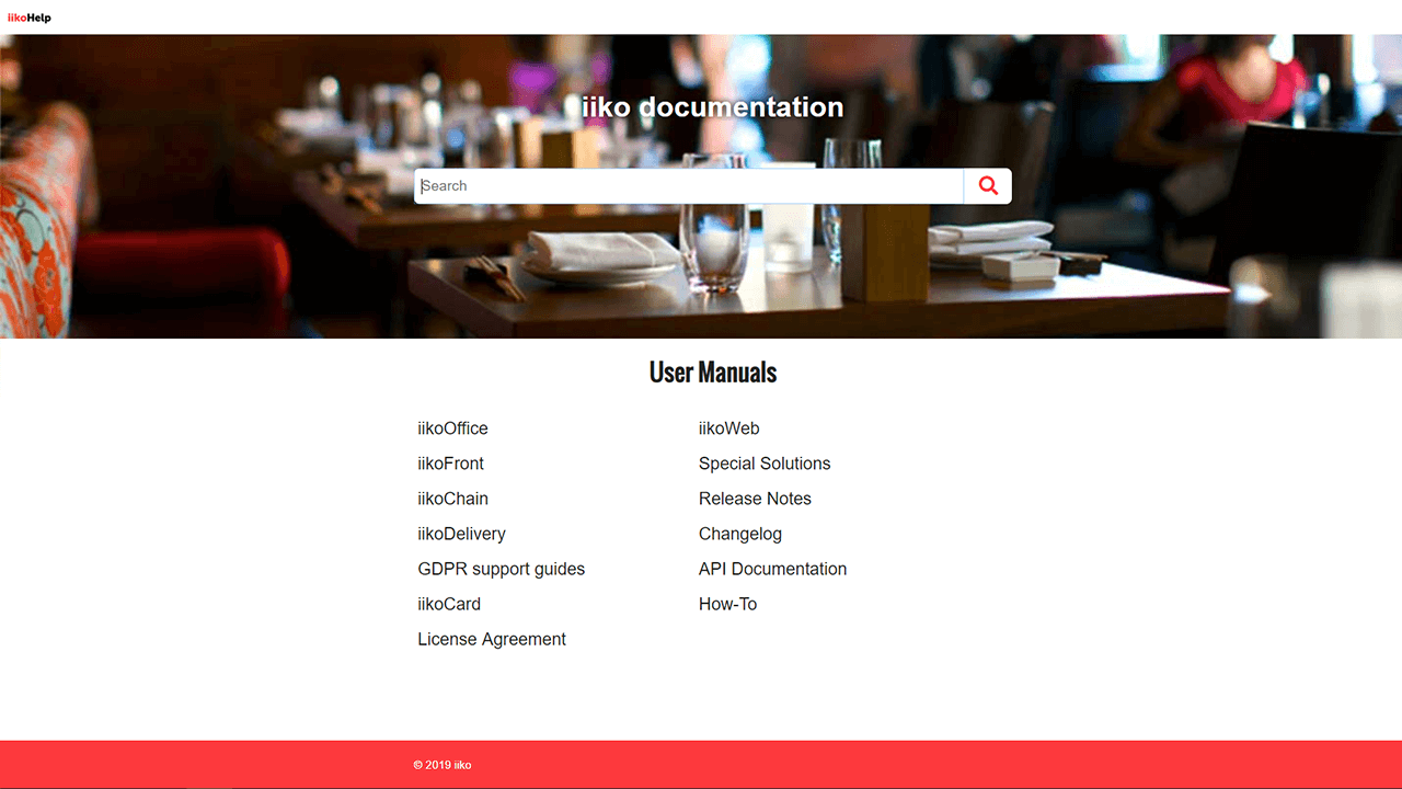The iiko online documentation portal is a good example of how you can manage different types of documentation from a single place. They have various documentation types, ranging from product manuals to GDPR support guides and license agreements.